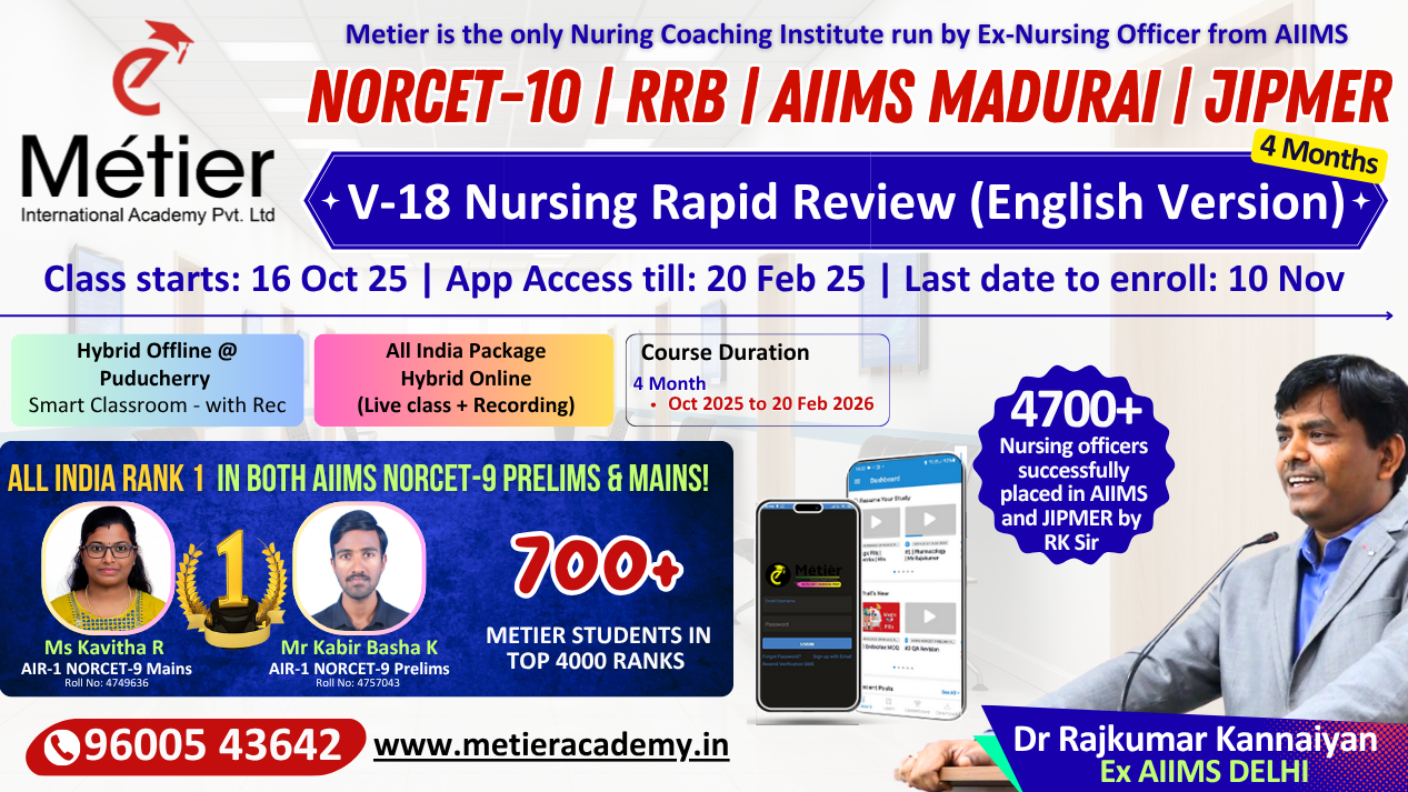 4 Months V-18 Nursing Rapid Review Regular Batch - NORCET-10 | RRB